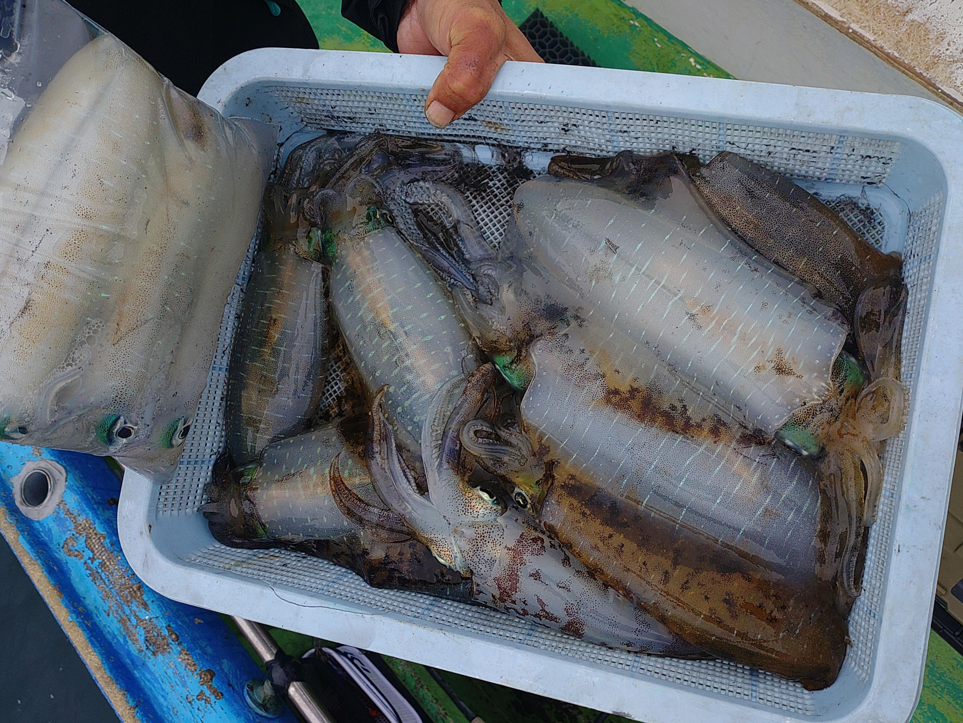ティップランアオリイカ7:15出船、2時30分上がり。2名の予約で出船確定、定員8名、氷付き12000円。PE1号以下、エギ3~3.5号、シンカー各種お持ちください。貸し道具はありません、持参ください。
